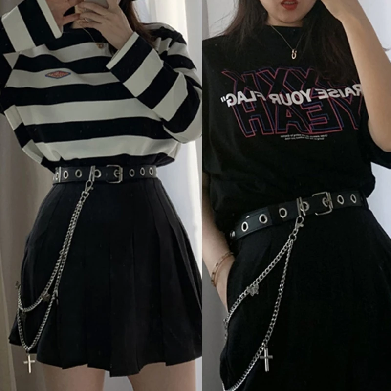 Дополнительный Стиль: поясная цепочка, пояс из искусственной кожи + поясная цепочка