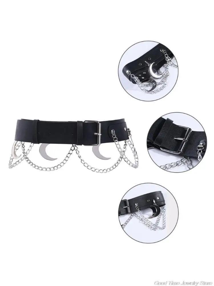 Полумесяц панк поясной ремень Бюст: (прибл.)65-77 см/25,59-30,31 дюймаДлинный пояс; Обхват груди: (приблизительно) 78-88 см/30,71-34,65 дюйма