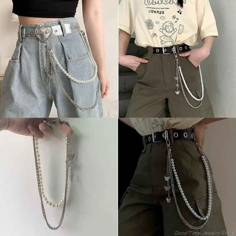 Женский пояс в стиле Харадзюку, Готическая цепочка на пояс для джинсов в стиле панк с металлическим крестом и подвеской-бабочкой, Ювелирное Украшение для брюк в стиле хип-хоп