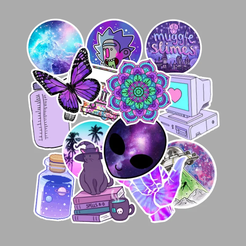 50 шт./лот, модный дизайн, свежие наклейки на велосипед, граффити, фиолетовый цвет, забавная компьютерная чашка, велосипедная Рама, водонепроницаемые наклейки, аксессуары