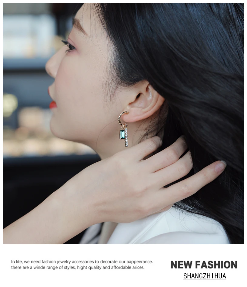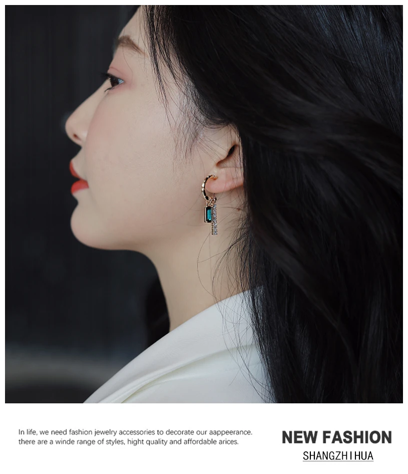 XIALUOKE S925 иглы Ретро элегантные Геометрические Квадратные зелен...