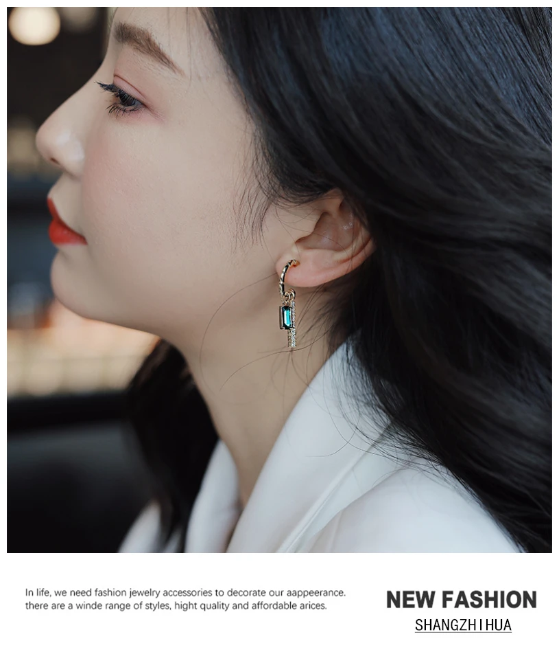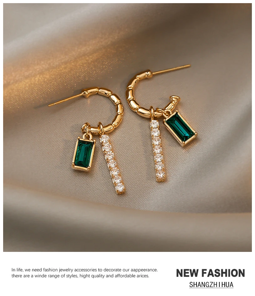 SHANGZHIHUA 2021 Модный золотой бамбуковый ювелирный кулон с окантовкой и роскошными кристаллами Изысканная серьга-это необычный вечерние чный подарок для женщин