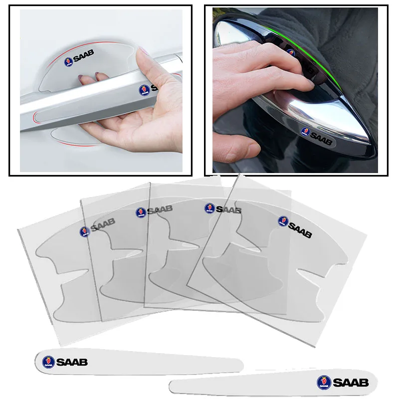 Прозрачная защитная пленка для ручки автомобиля, 8 шт., автомобильные наклейки для SAAB 9000, 900, 9-3, 9-5, 93, 9-7, 600, 99, 9-X, турбо автомобильные товары, аксессуары