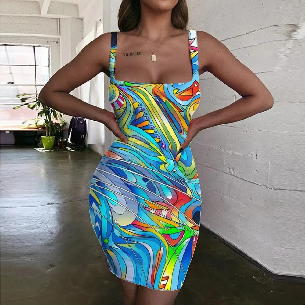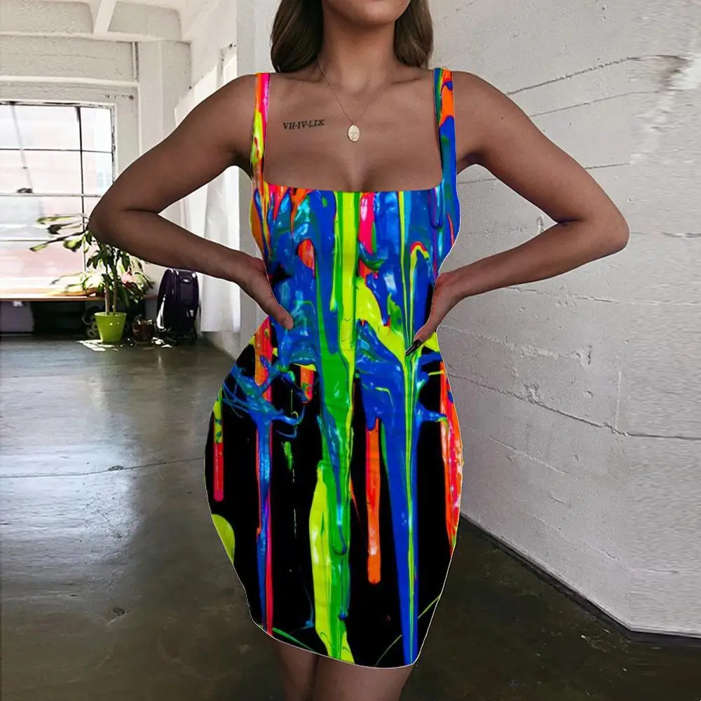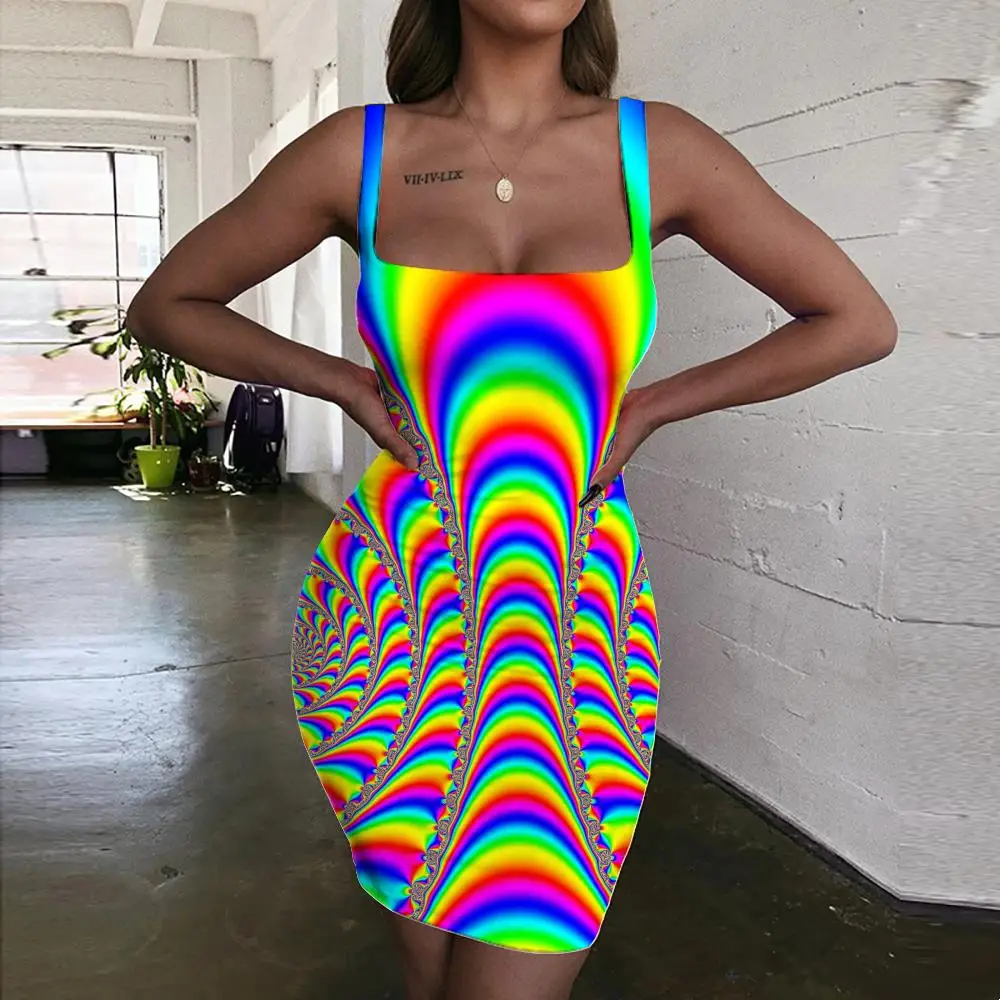 Платье женское неоновое с абстрактным 3D-принтом, на бретелях
