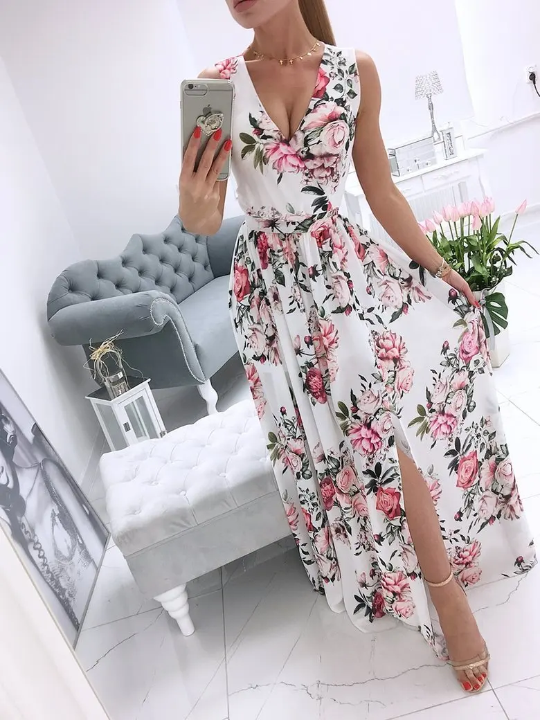 Элегантное пляжное длинное платье с цветочным принтом, сексуальное ...