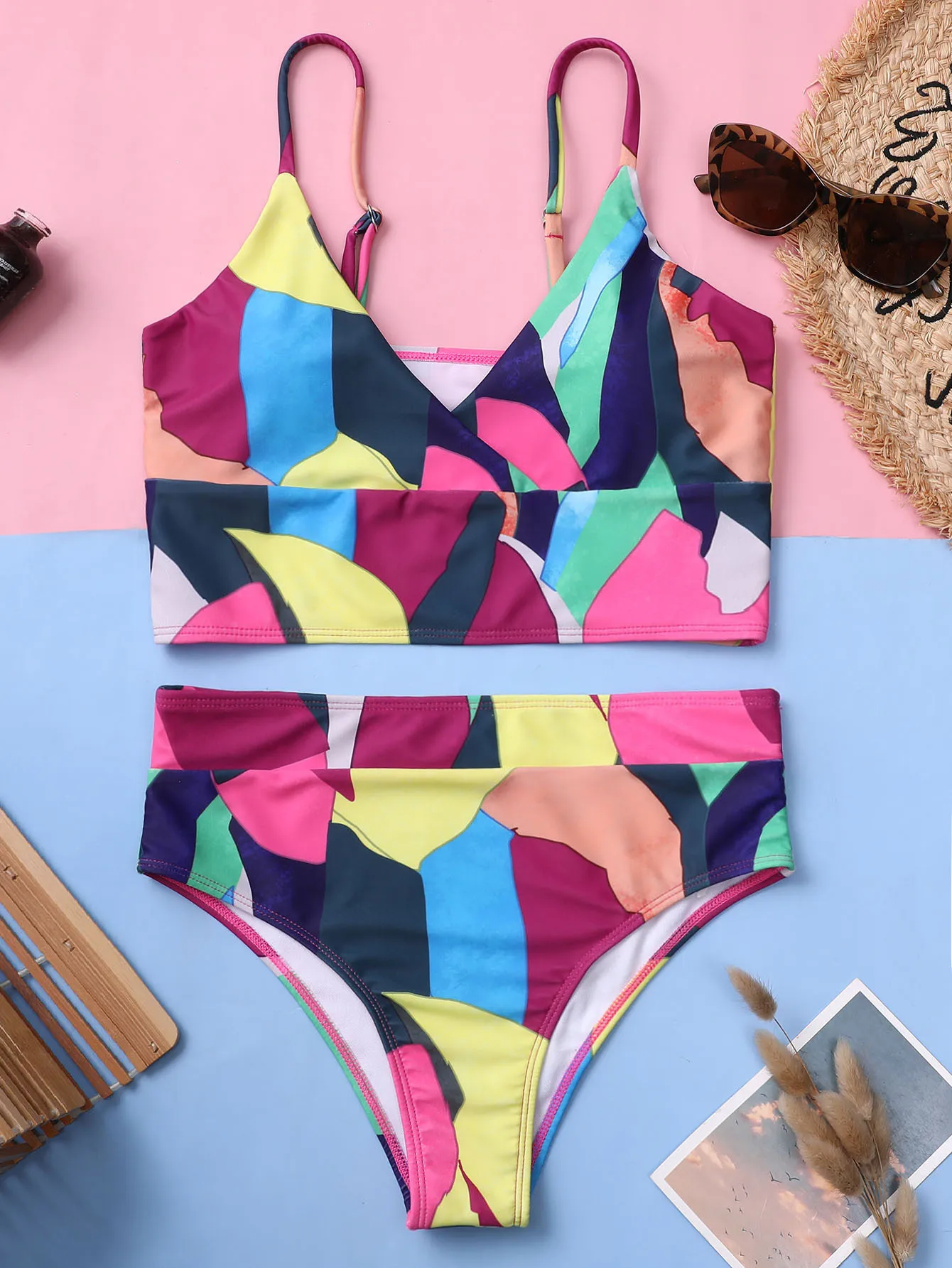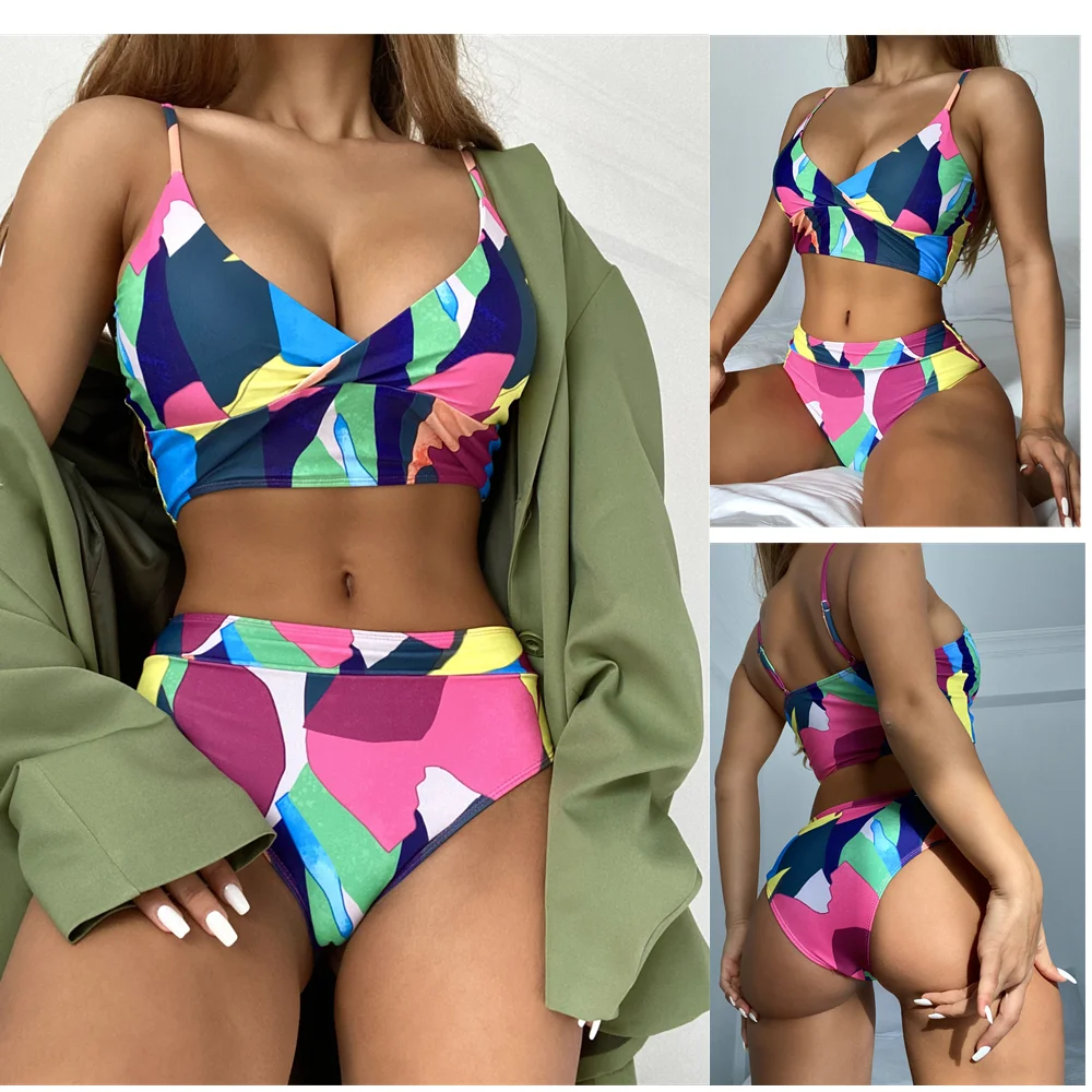 Бикини с высокой талией, купальник пуш-ап с геометрическим принтом ...