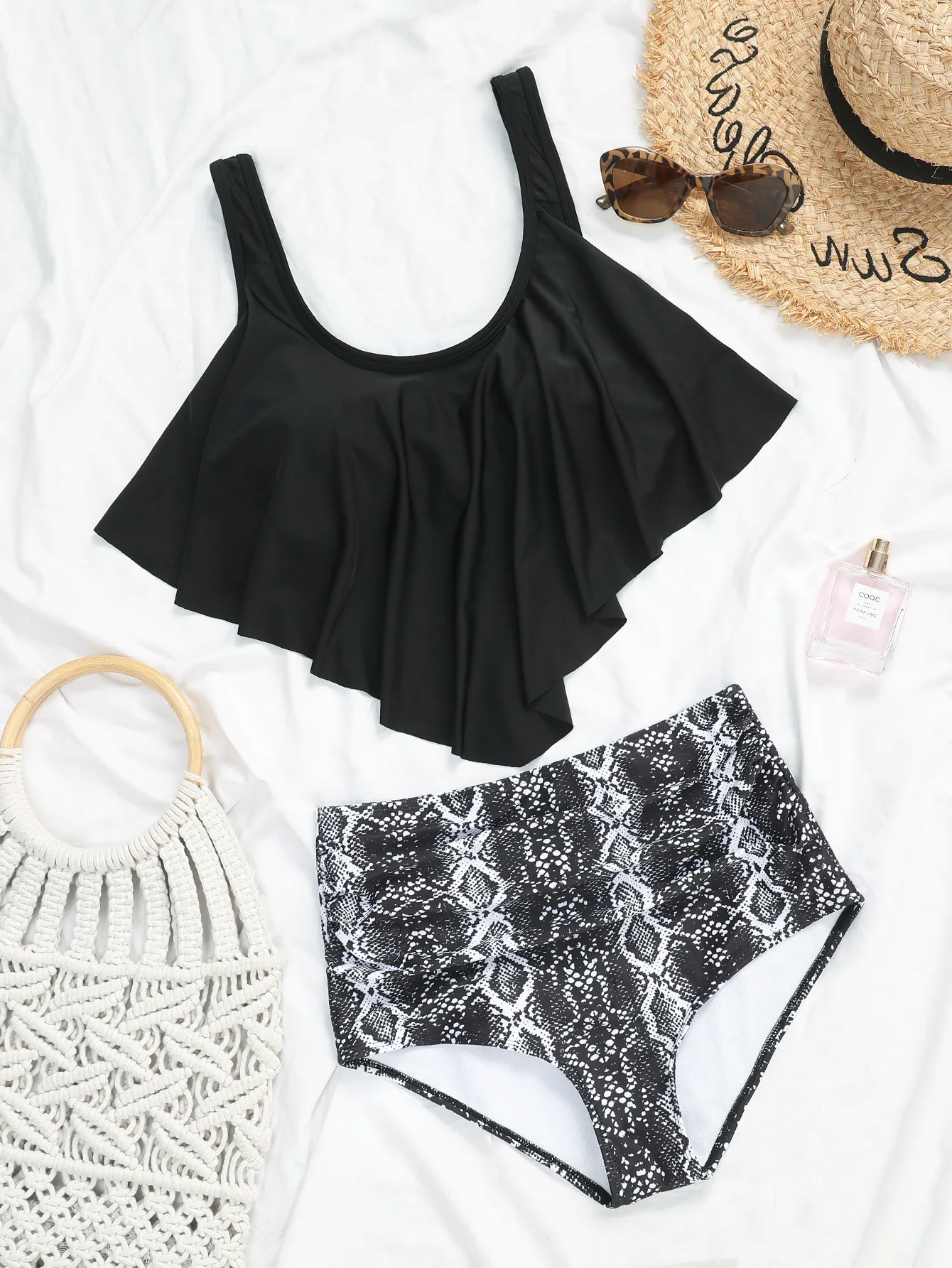 2021 сексуальный купальник бикини с высокой талией размера плюс, купальник с оборками, женский купальный костюм с принтом, пляжная одежда, 2 предмета