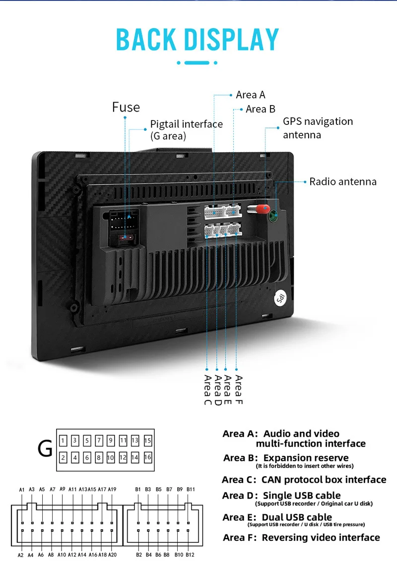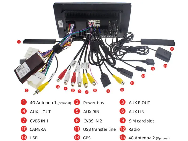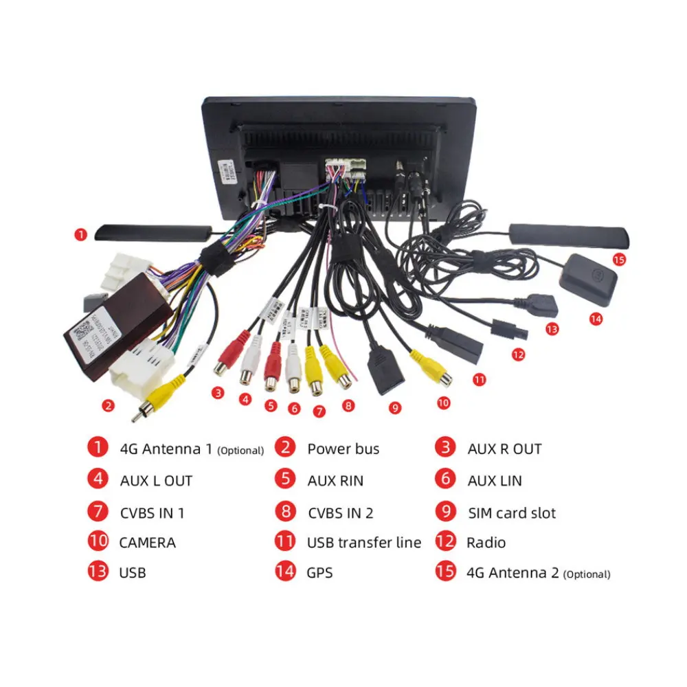Другие варианты: 1. Передняя и задняя камеры являются дополнительными; 2. Поддержка внешнего подключения, USB-ключ 4G и USB DAB +; 3. Поддержка USB DVR с камерой заднего вида; 4. 2 USB-порта.
