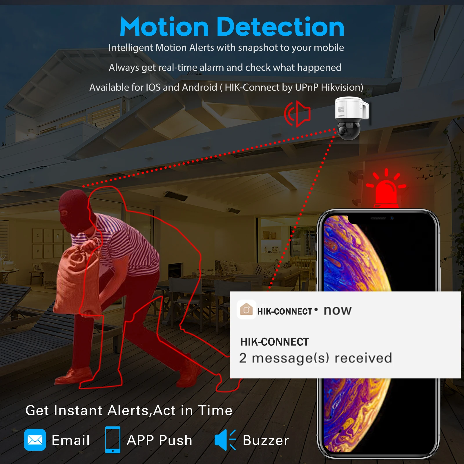 Автоматическое обнаружение движущихся объектов и Оповещение об опасности. Эффективно Защитите свой дом и бизнес от взломов, вторжений и взломов. Когда вторжение происходит без вашего разрешения, эта камера отправит оповещения в режиме реального времени.