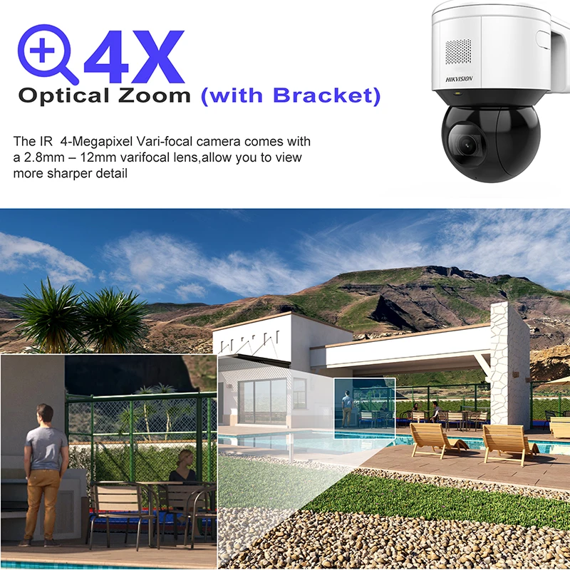 Hikvision DS-2DE3A404IW-DE (2,8-12 мм) 4MP 4 × IR сетевая PTZ камера может быть широко использована в нескольких внутренних и наружных сценах, таких как коридор, офис, магазин, ресторан и т. Д.