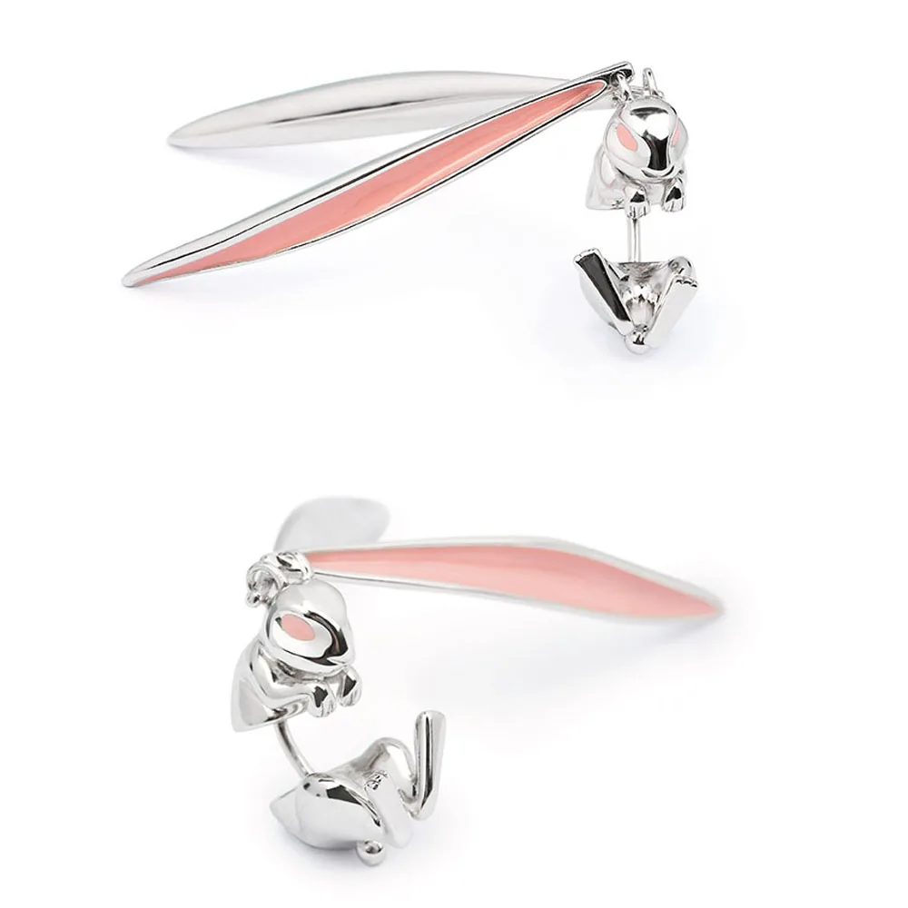 Тип серьги: висячие серьгиПол: женщинЦвет: розовый цветФорма/узор: заячьи ушкиПосылка входит: 1 серьга