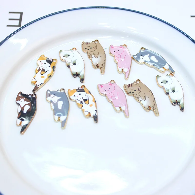 10 шт. Модные металлические подвески в виде Милого Розового кота для изготовления самодельных сережек, ожерелий, подвесок, ювелирных изделий, аксессуары