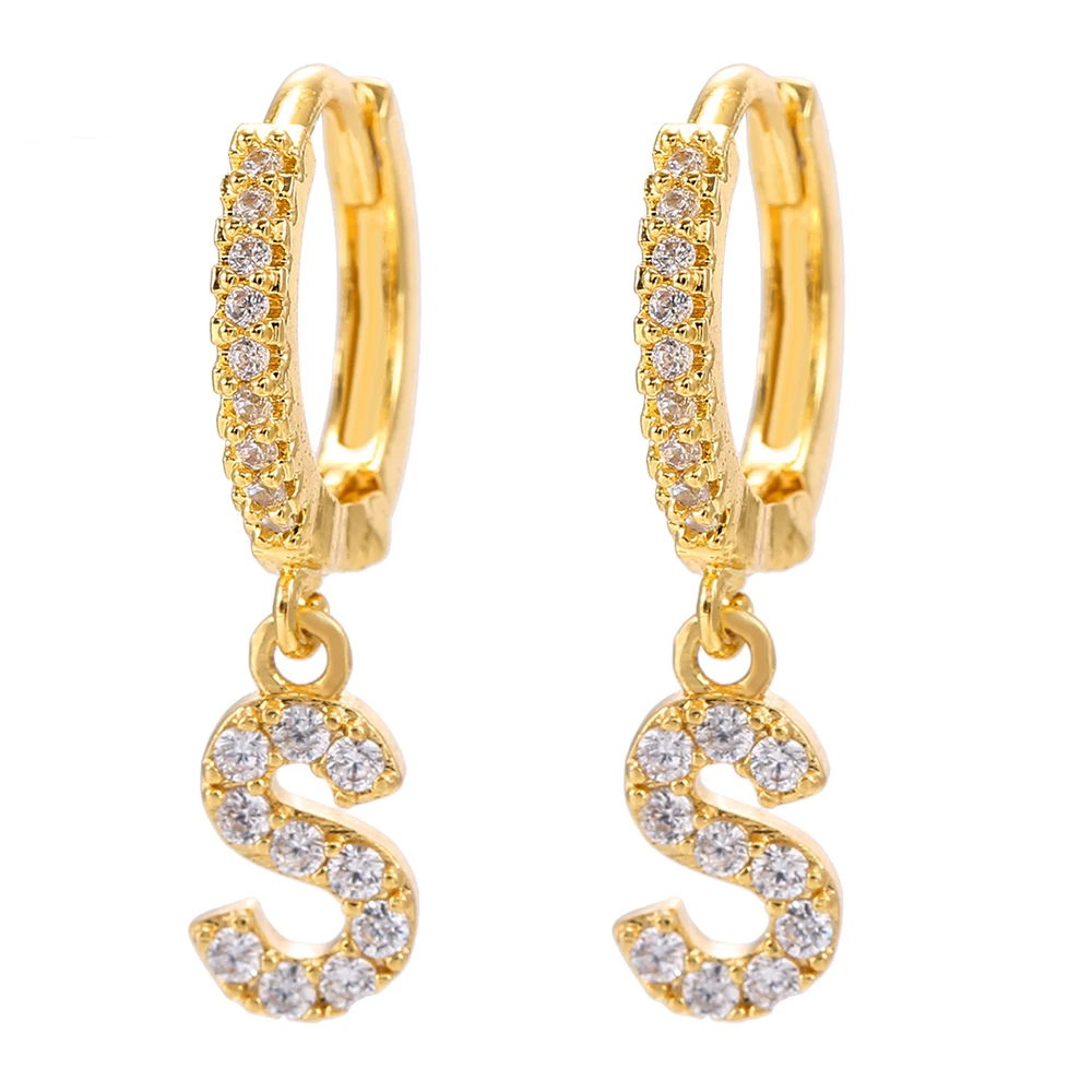 Серьги-кольца Для Пирсинга Ушей женские, медные инициальные украшения с буквами на английском языке с цирконом, ювелирные украшения для девушек и женщин, 2 шт., 26 дюймов