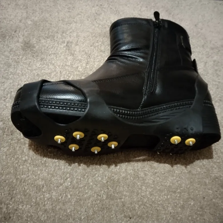 100% новый и высокое качество!Обувь оснащена стальными шипами с заземлением, которые обеспечивают превосходное сцепление со льдом и снегом. Они помогут вам избежать падения на плоскую и тонкую ледяную или снежную поверхность.Прочные накладки с хорошей эластичностью, заземленные Стальные Шпильки.Легко устанавливается поверх существующей обуви без застежек или ремешков.Материал гибкий до-40 градусов