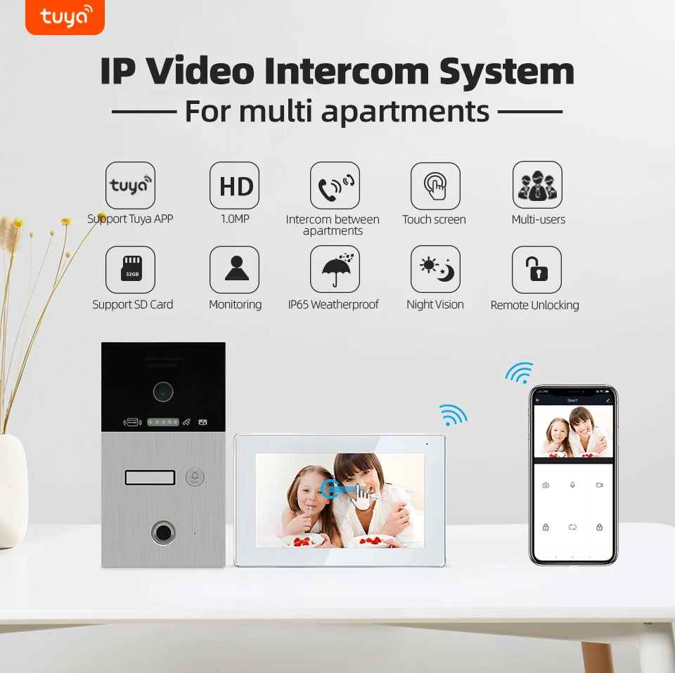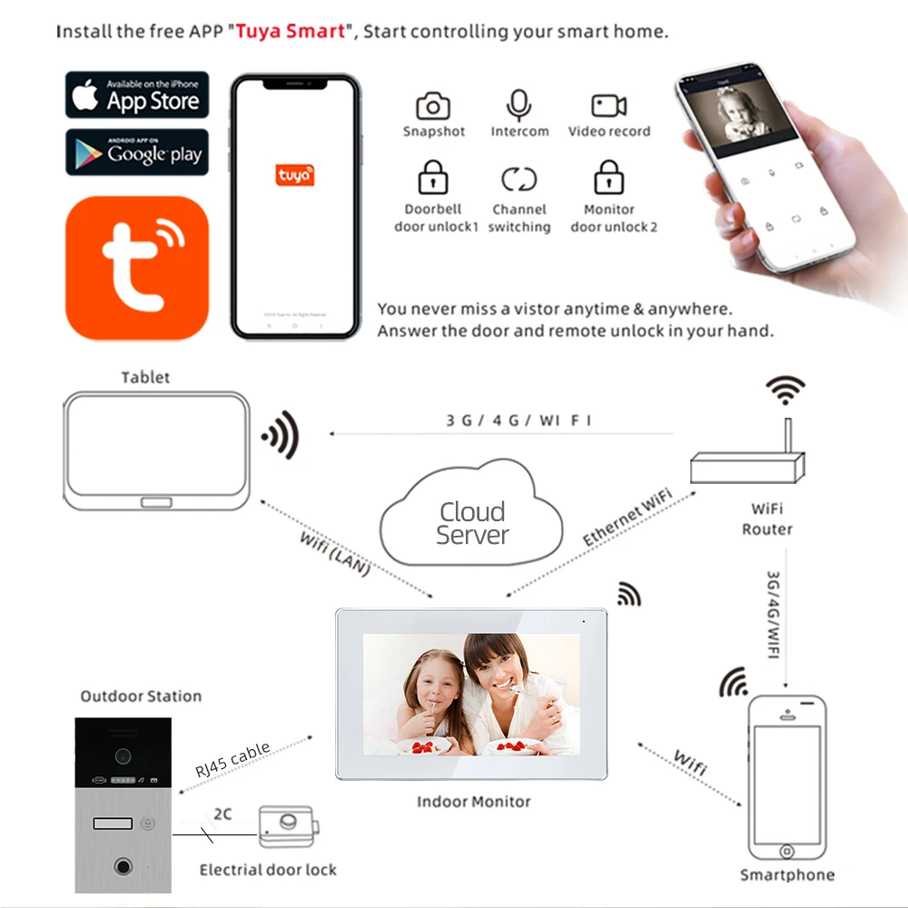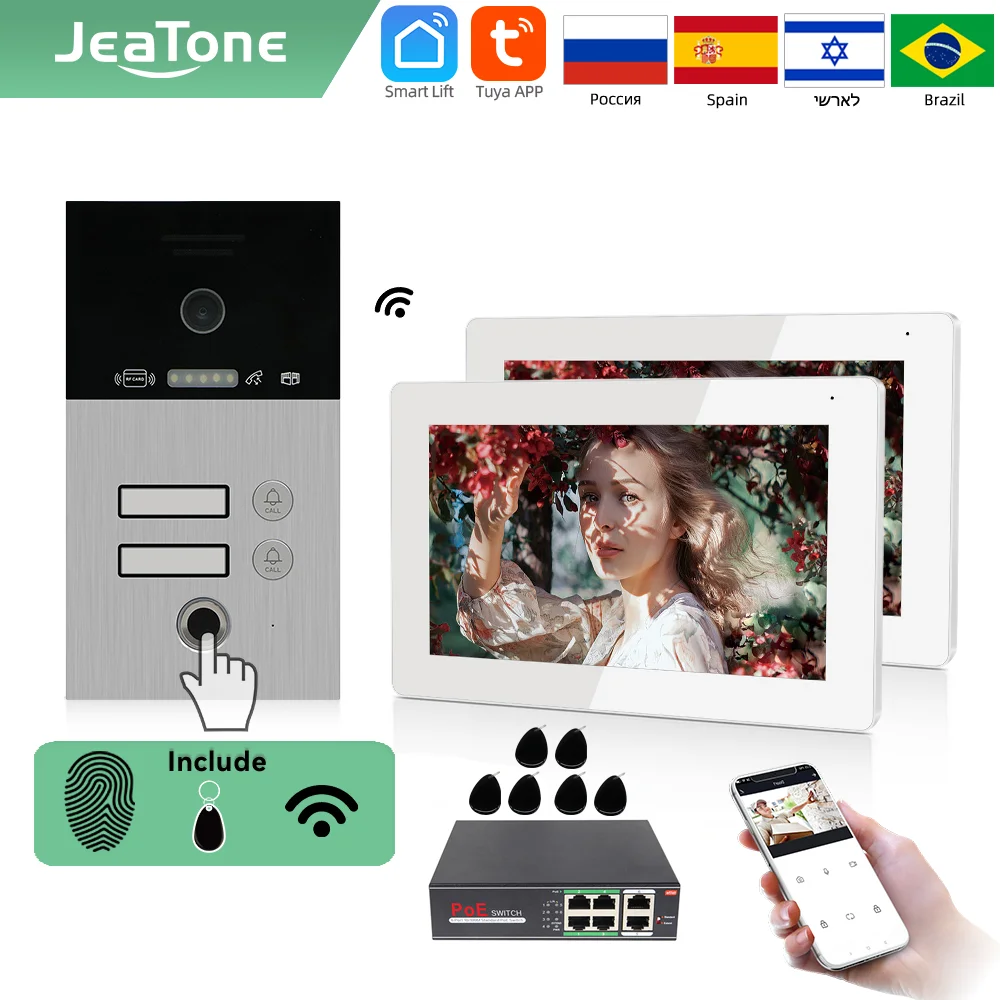 Jeatone TUYA 7 IP WIFI беспроводной видеодомофон для квартиры 1F2F3F монитор дверной звонок наружный унитаз с отпечатком пальцаRFIC карта
