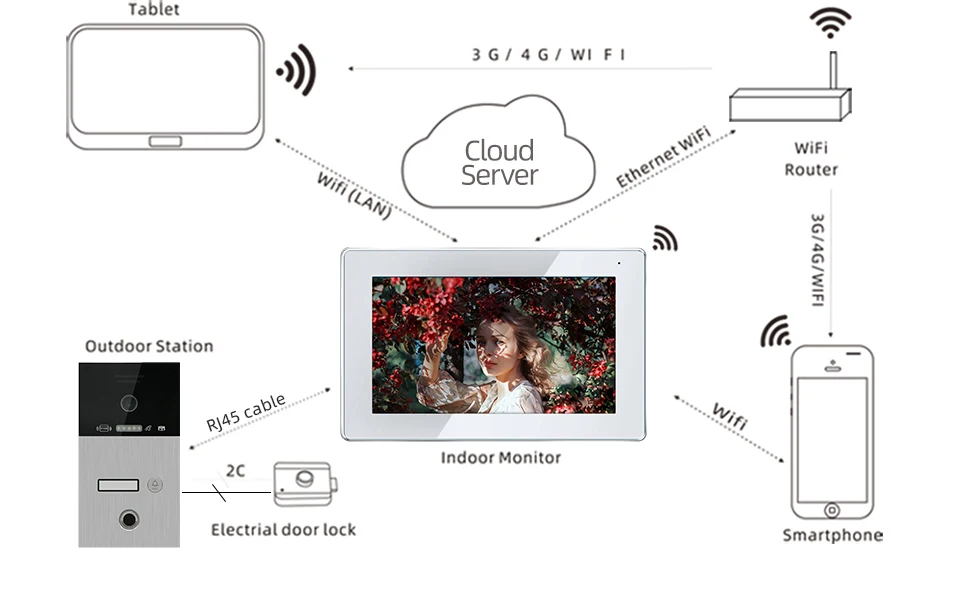 1. Многомерное соединение может использоваться для реализации интеллектуального домофона на любом устройстве. В том числе приложение соединяется с наружным блоком; Внутренний блок соединяется с внутренним блоком; Внутреннее соединение с наружными блоками; Быстрое и безбарьерное общение.2. Мобильные телефоны и планшеты должны подключаться только к 3G/4G/5G или wifi нескольких сетей для синхронизации внутреннего блока в любое время.