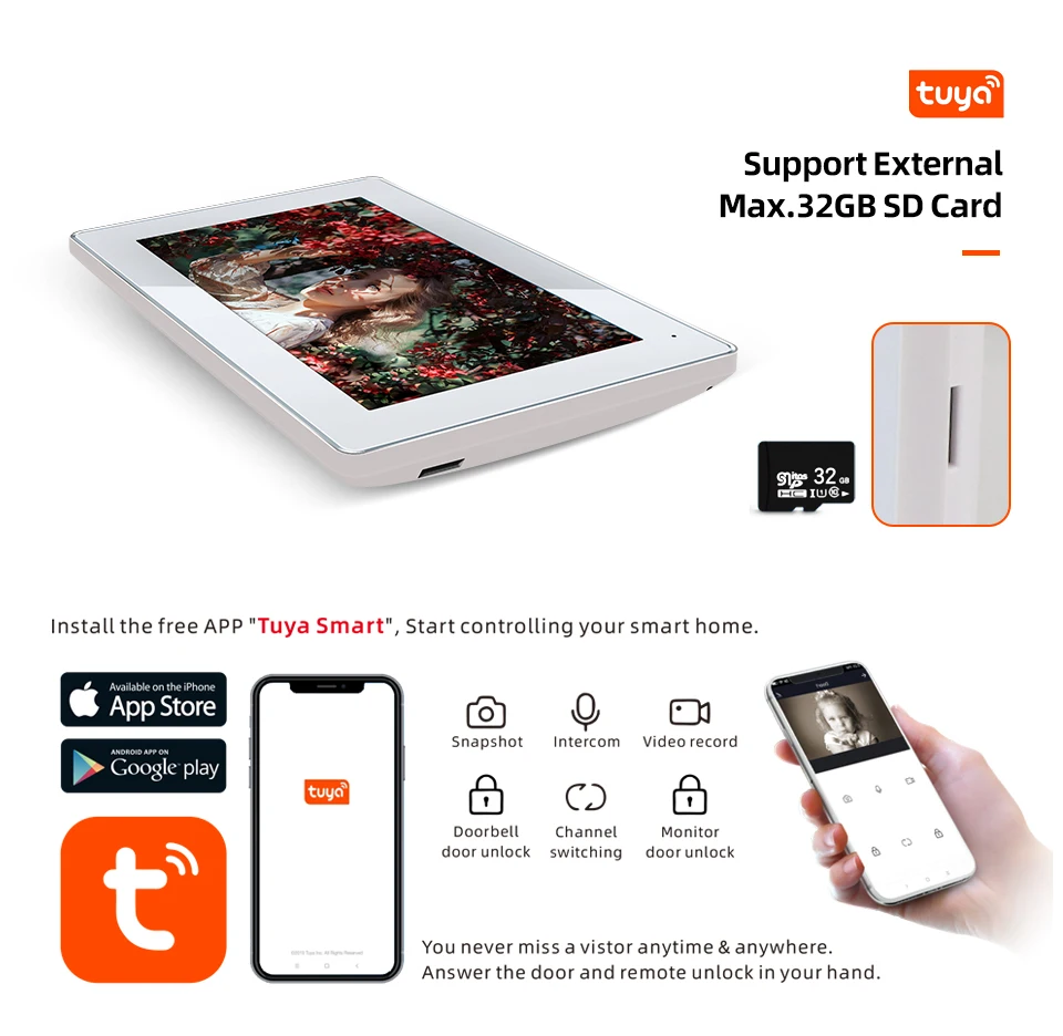 1. После загрузки приложения Tuya вы можете подключить устройство мониторинга к смартфону менее чем за две минуты. Операция проста и безопасна.2. Независимо от того, где вы находитесь в вашем доме или даже за рубежом, вы можете легко ответить на звонок удаленно и контролировать наружную среду.3. Эта тенденция будущих технологий, Освободите руки и наслаждайтесь использованием мобильный телефон, чтобы контролировать весь дом умных домашних приборов!4. Поддержка вставки карты 32G для записи, скриншота и обновления.