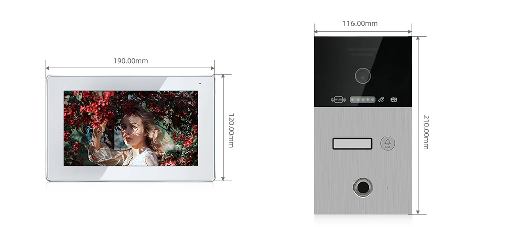 Размерmonitor:19.0cmX12.0cm Intercom:11.6cm x 21.0cm