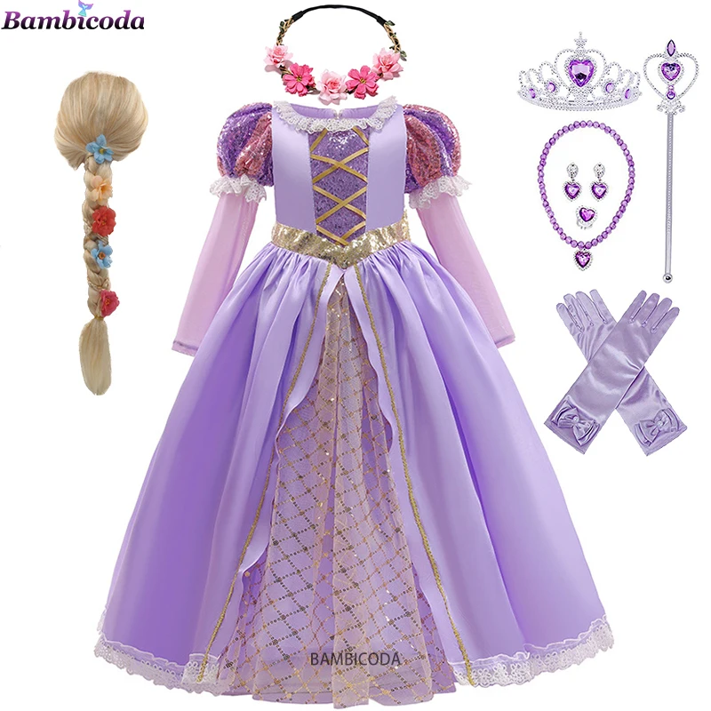 С милым принтом Рапунцель для девочек платье Для детей, на лето Рапунцель нарядное платье принцессы костюм Маскировка для дня рождения; Костюм на карнавал или Хэллоуин вечерние Одежда