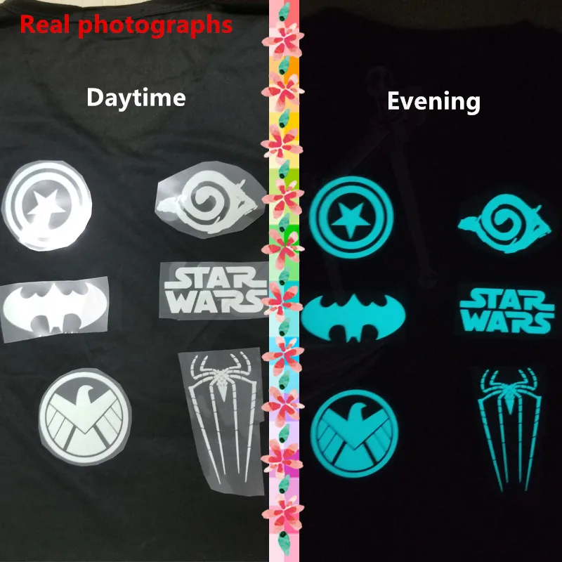 Европейская маленькая нашивка с логотипом, синие светящиеся виниловые наклейки, термоклейкие наклейки для одежды, гибкий плавкий переводной элемент
