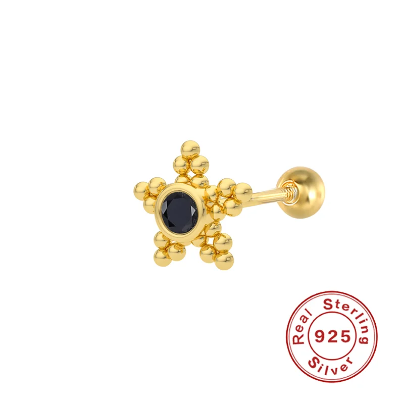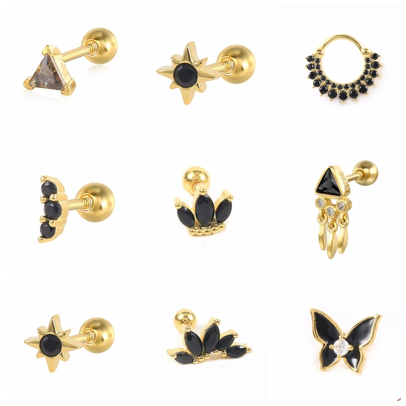 Автоклав 1 шт. реальные 925 стерлингового серебра серьги-гвоздики для женщин пирсинга хрящей черные циркониевые серьги маленькие милые серьги, ювелирные изделия