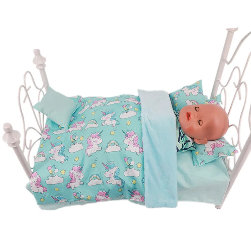 5 шт.компл. Кукла Детская мебель = 3 подушки + 1 Стёганое одеяло крышка + 1 простыня для 18 дюймов с капюшонами в американском и 43 см для ухода за ребенком для мам реборн Новое новорожденная кукла Girl'Toy