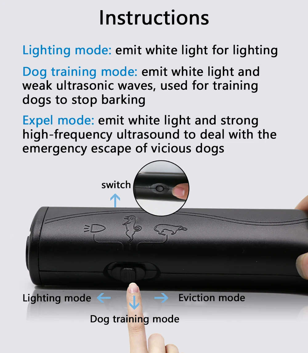 Многофункциональность: кроме инструмента для дрессировки домашних животных, он также может предотвратить нападения собак, подходит для работы на открытом воздухе, путешествий и ночного патрулирования безопасности.