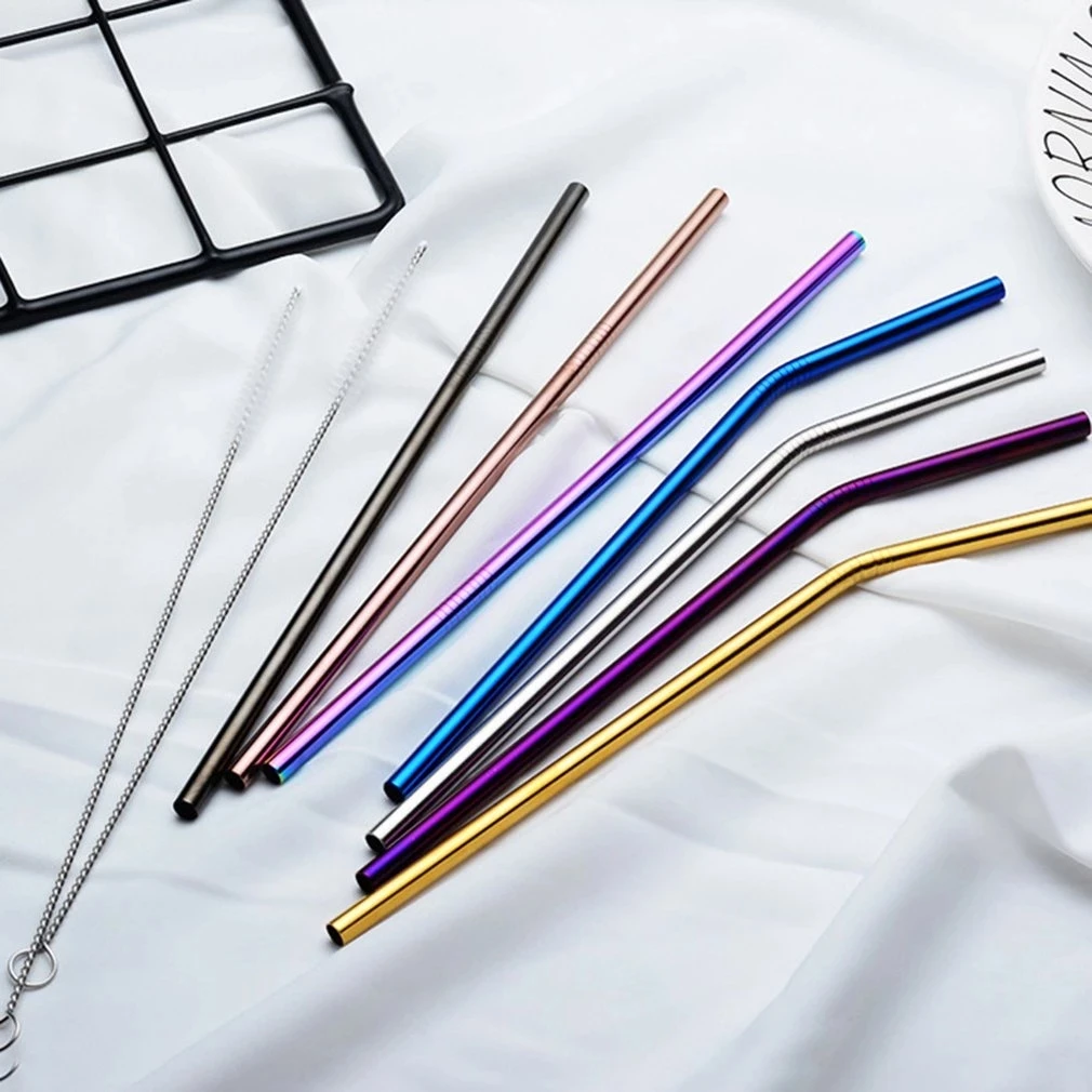 Цветные Металлические Прямые изогнутые соломинки из нержавеющей ста...