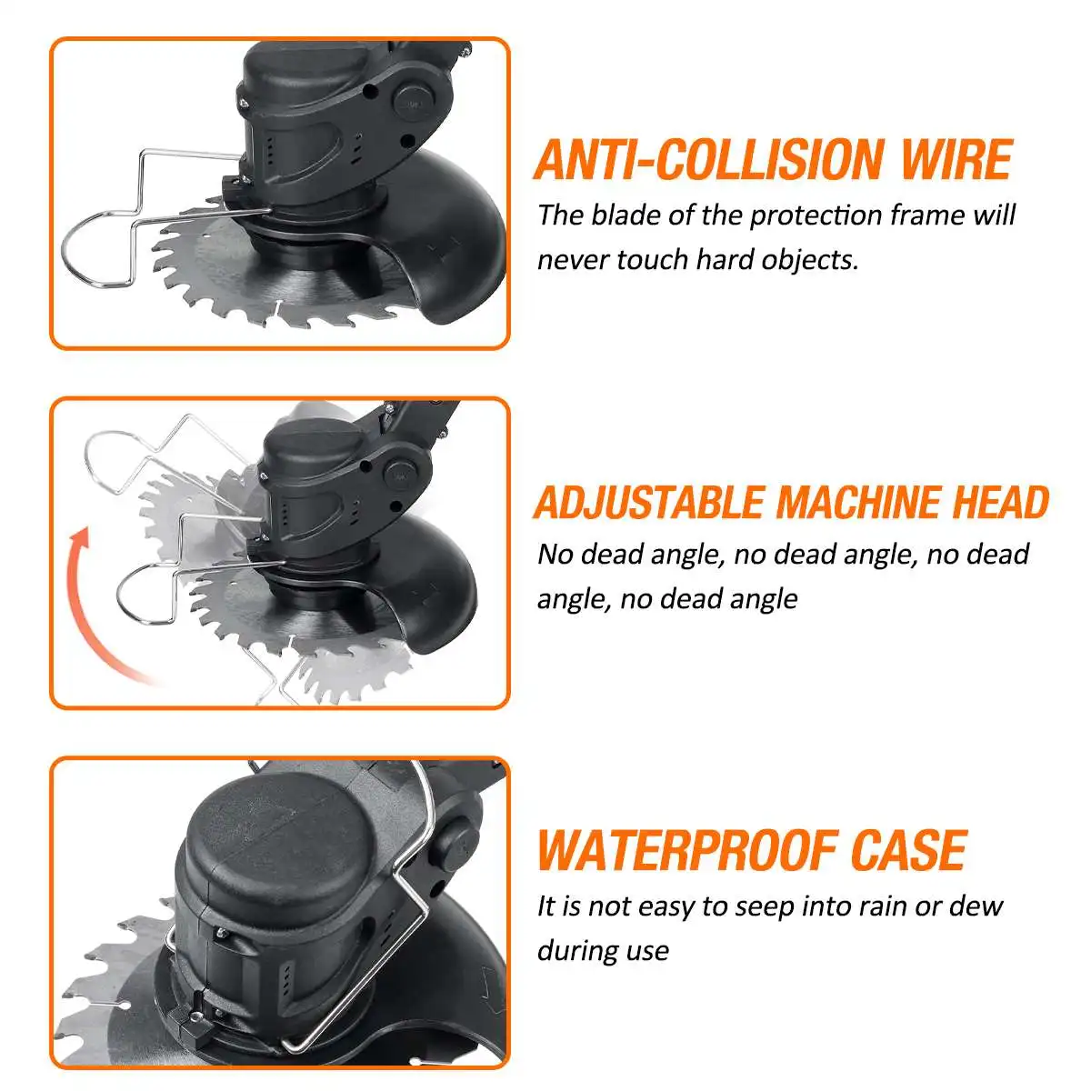 Особенности:-Двигатель из чистой меди, высокая мощность, быстрая скорость.-Провод для предотвращения столкновений, лезвие защитной рамки никогда не будет касаться твердых предметов.-Регулируемая головка машины, без мертвого угла.-Водонепроницаемый Чехол, нелегко протечь под дождь или росу во время использования.-Диаметр резки, диаметр резки до 150 мм, более высокая эффективность.-Удобная вспомогательная ручка, удобный захват, отсутствие трения рук, положение можно регулировать по желанию.-Поддержка двойного переднего колеса, более комфортная работа в течение длительного времени.-Ручка переключателя с двойным управлением, более удобная в эксплуатации, высокий коэффициент безопасности.-16-секционный полюс можно регулировать по желанию с возможностью расширения, а высоту можно регулировать по желанию в соответствии с потребностями.
