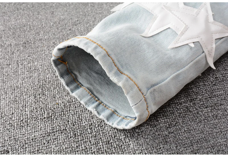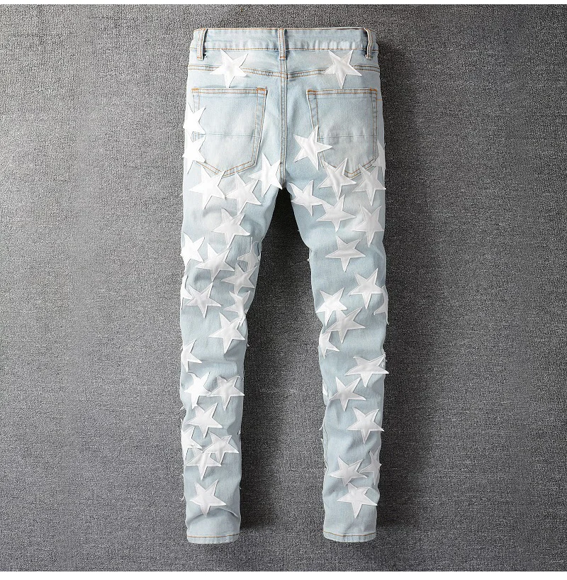 Мужские кожаные джинсы с нашивками в виде звезд, уличная одежда, лоскутные рваные Стрейчевые джинсы, узкие брюки-карандаш