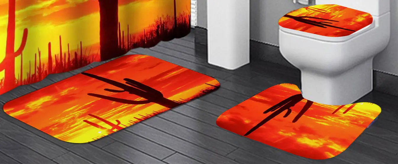 Оранжевый фланелевый коврик для ванной с пейзажем заката, коврики для туалета, тканевые занавески для душа с 12 крючками, домашний декоративный набор для ванной комнаты