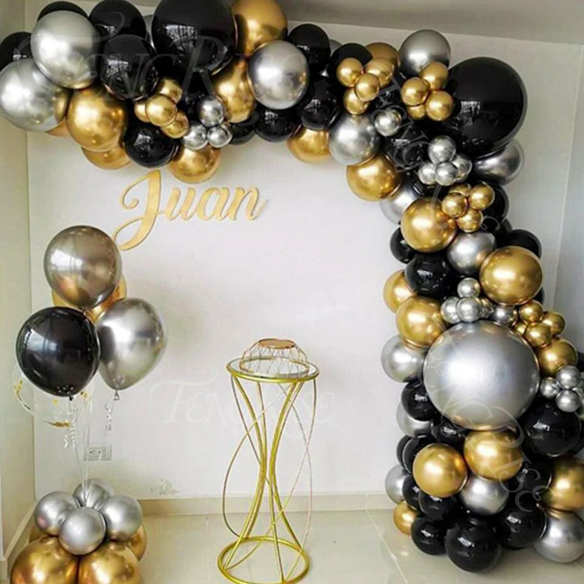 Шар-гирлянда из латекса, черного и золотого цвета, арочный комплект