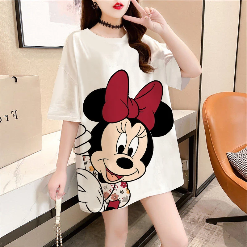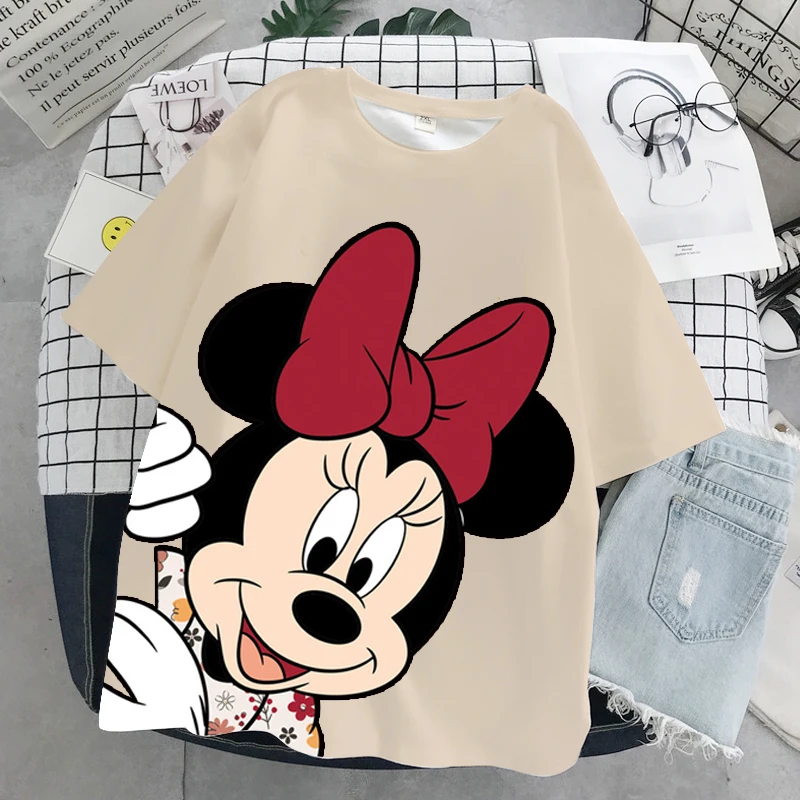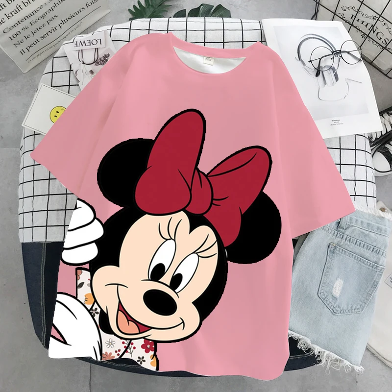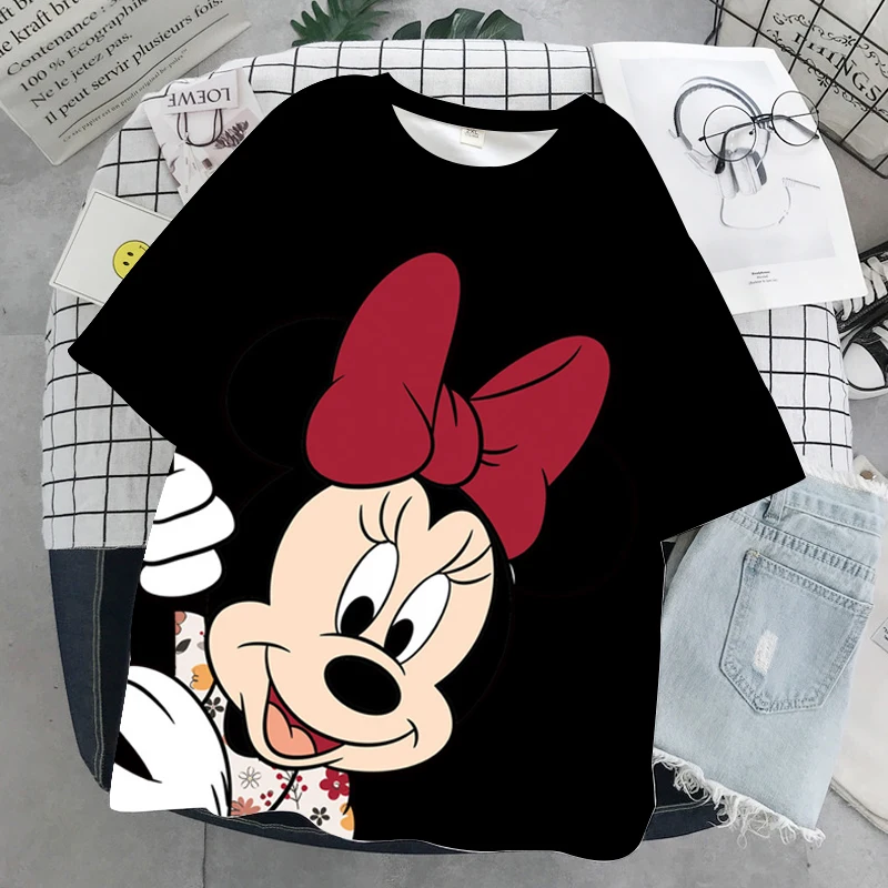 Футболка женская большого размера с мультипликационным 3D изображением Микки и Минни, в стиле Харадзюку, с коротким рукавом, y2k