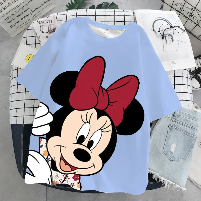 Женская футболка Disney с принтом Минни Маус, Повседневная Блузка с...