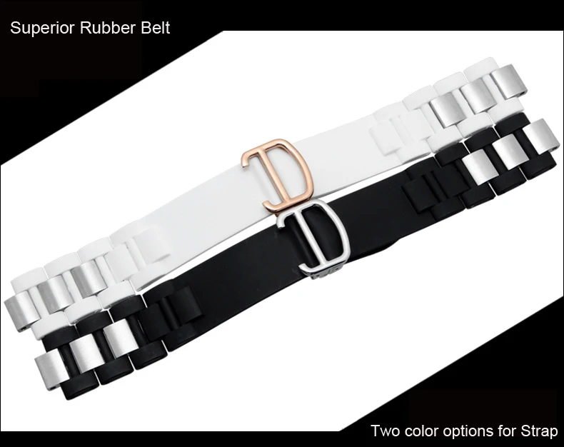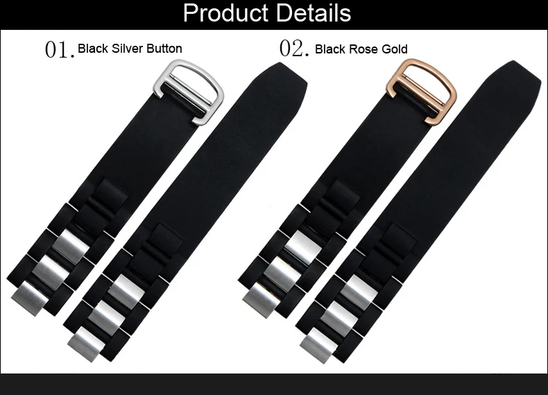 Водонепроницаемый резиновый ремешок подходит для силиконовых ремешков серий 21 век Картье 20*10 мм, черный и белый для мужчин и женщин