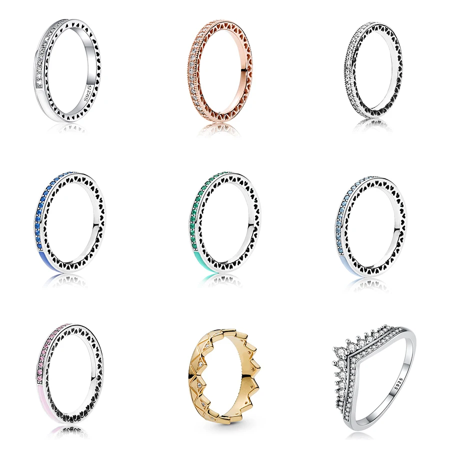 Кольцо на палец из стерлингового серебра 925 пробы, сделай сам, Корона из розового золота, голубое, розовое, красное, круглое, для женщин, украшения для свадебной вечеринки