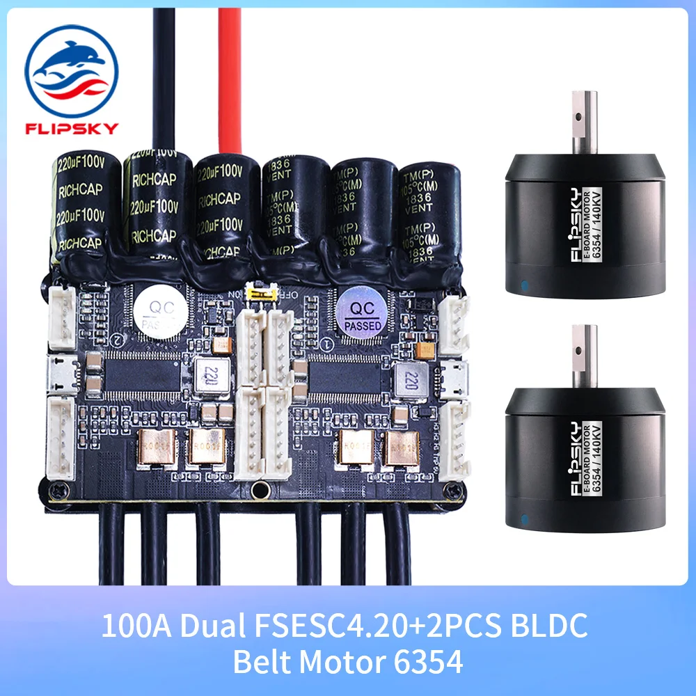Два ремневых двигателя BLDC 6354 140190кв 3500 Вт и двойной бесщеточный двигатель FSESC4.20 100A (на основе VESC), комбинированный для электрического скейтборда