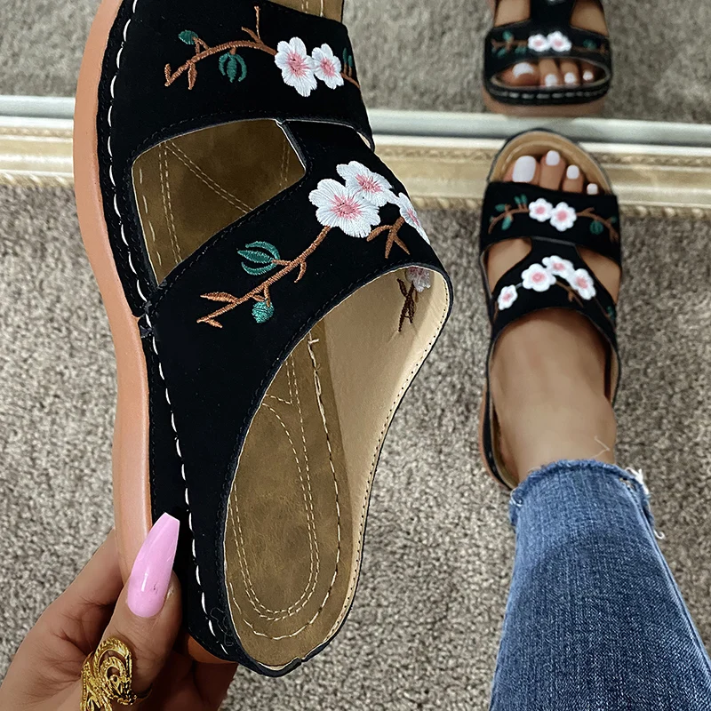 Повседневные пляжные ортопедические сандалии с цветочной вышивкой