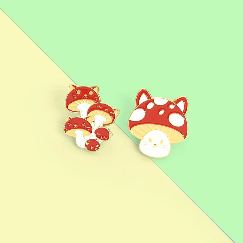 Очаровательные эмалевые заколки с изображением кошачьего лица и красных грибов, броши с изображением растений, значки с изображением животного, Мультяшные заколки на воротник, сумка, шляпу, рюкзак, ювелирные изделия для мужчин