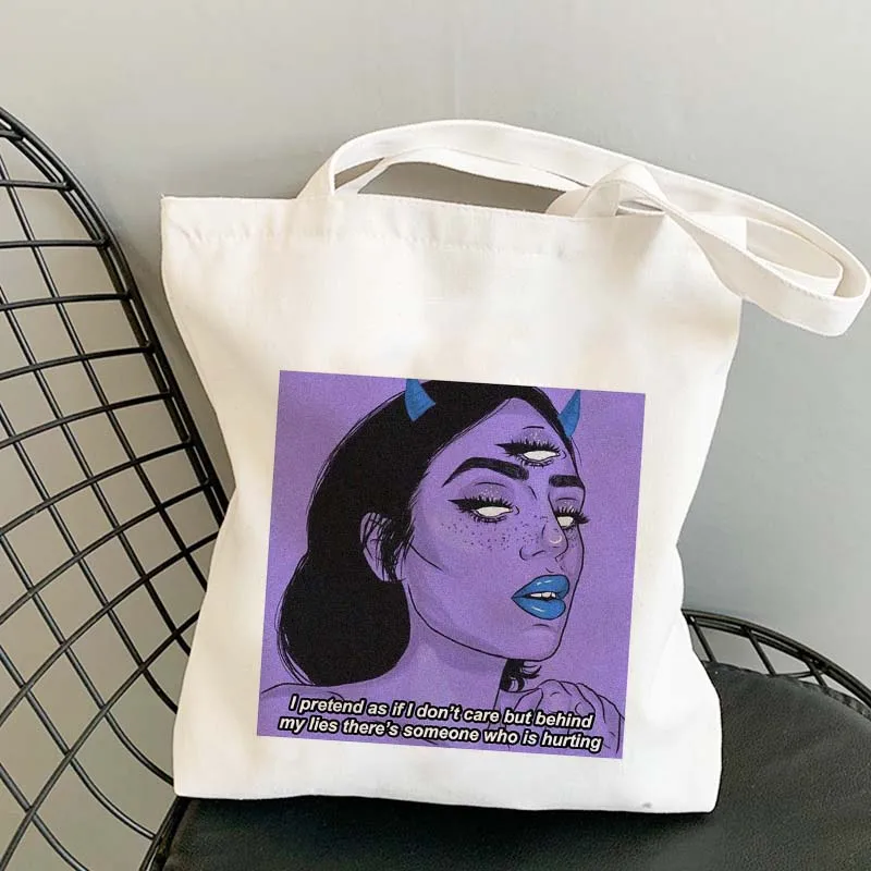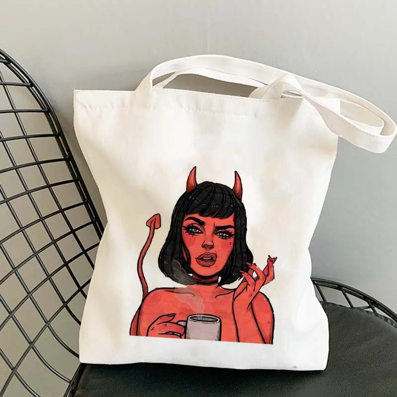 Винтажная холщовая женская сумка-тоут в стиле Харадзюку, тоут на плечо с рисунком ангела и дьявола для покупок, дорожная Холщовая Сумка-тоут