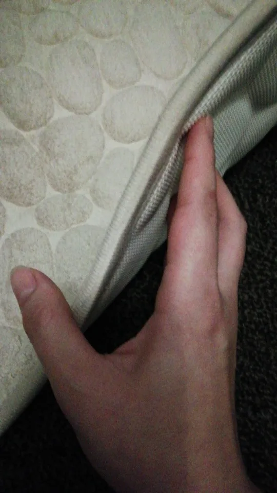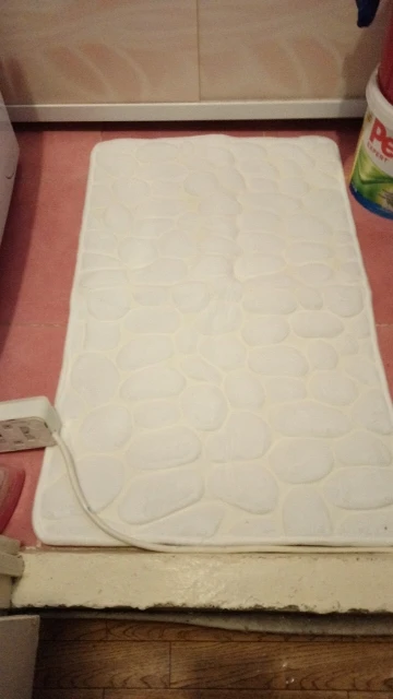Хороший, не тонкий коврик. Пришел в сложенном виде, поэтому готовится в стирку, хотя белый цвет пришёл чистым.