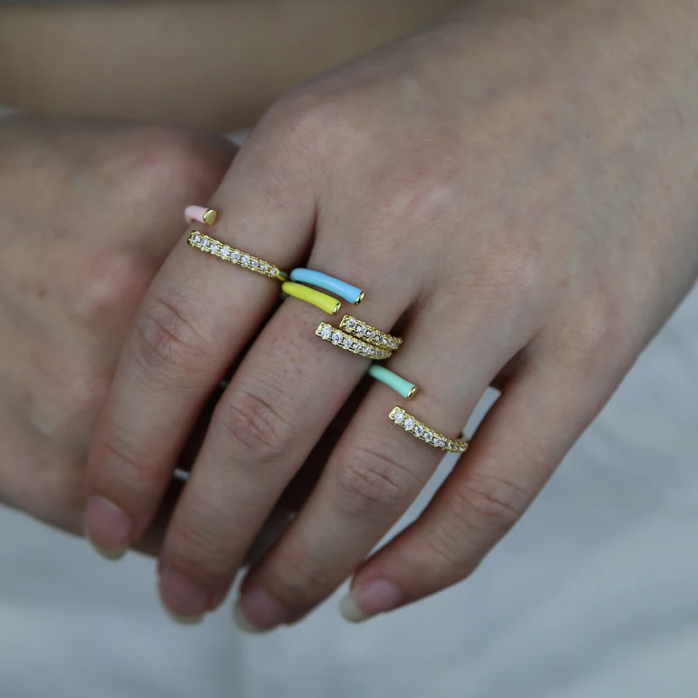Женское регулируемое кольцо с Пастельной неоновой эмалью, разноцветное ювелирное изделие, регулируемое кольцо с фианитом, 5 А, лето 2021