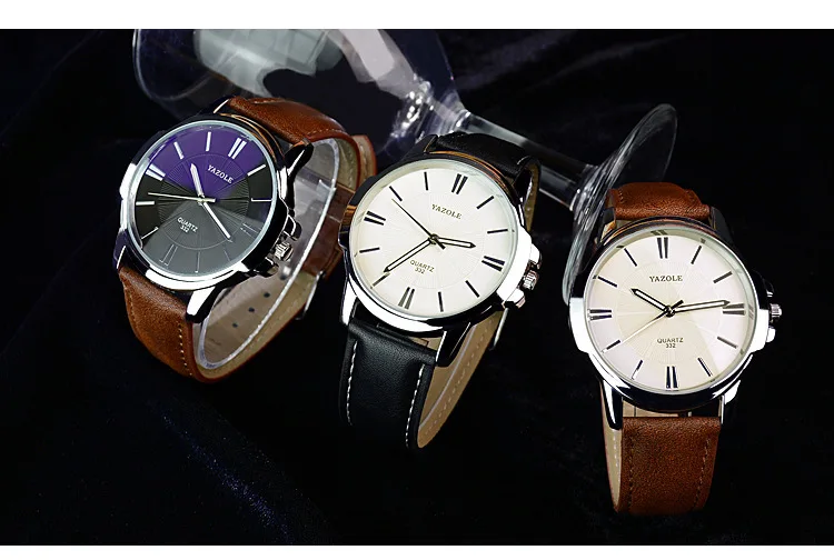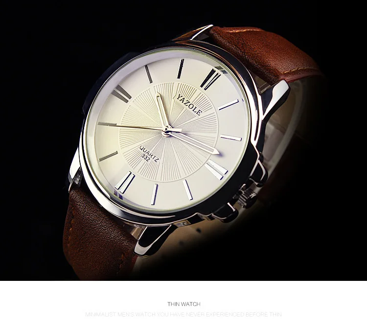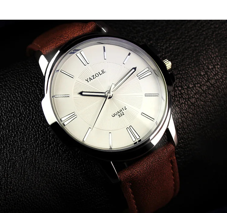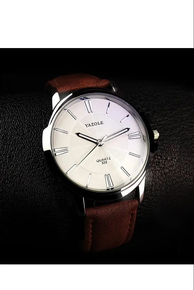 YAZOLE брендовые Модные мужские наручные часы с коричневым кожаным ...