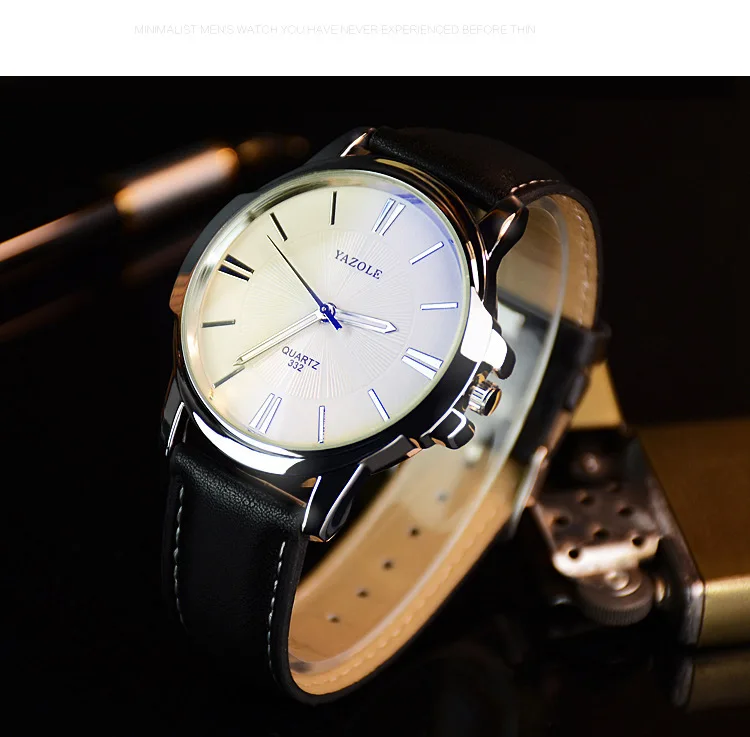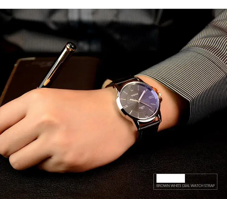 Часы наручные YAZOLE мужские с кожаным ремешком, брендовые Роскошны...
