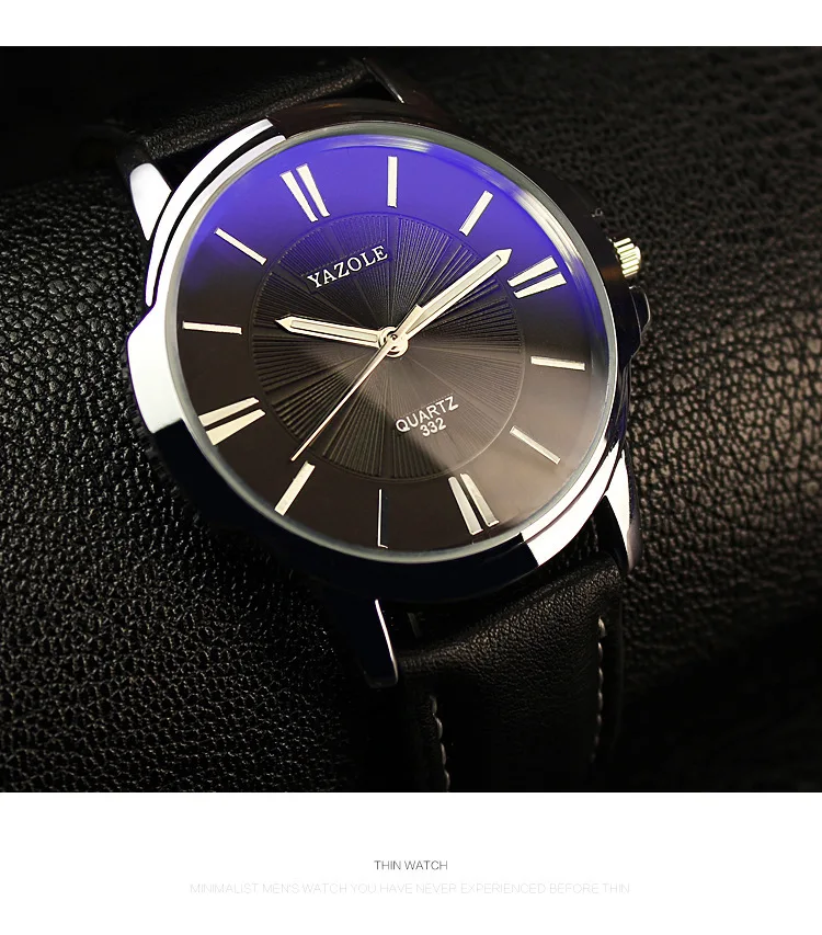 Часы YAZOLE мужские, из синего стекла, водонепроницаемые, с кожаным...