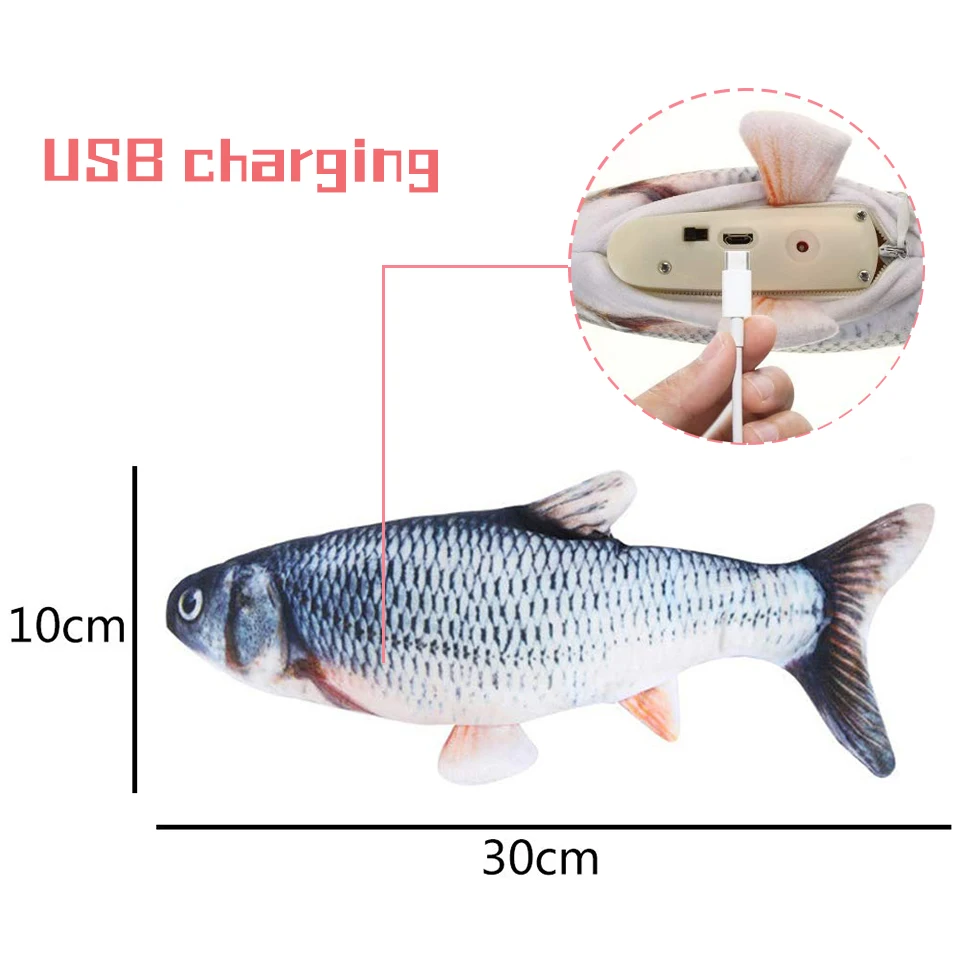 Игрушечная Рыба для кошек, 30 см, с зарядкой по USB, имитация танцев, прыгающая движущаяся, гибкая рыба, игрушки для кошек, электронные принадлежности, Прямая поставка