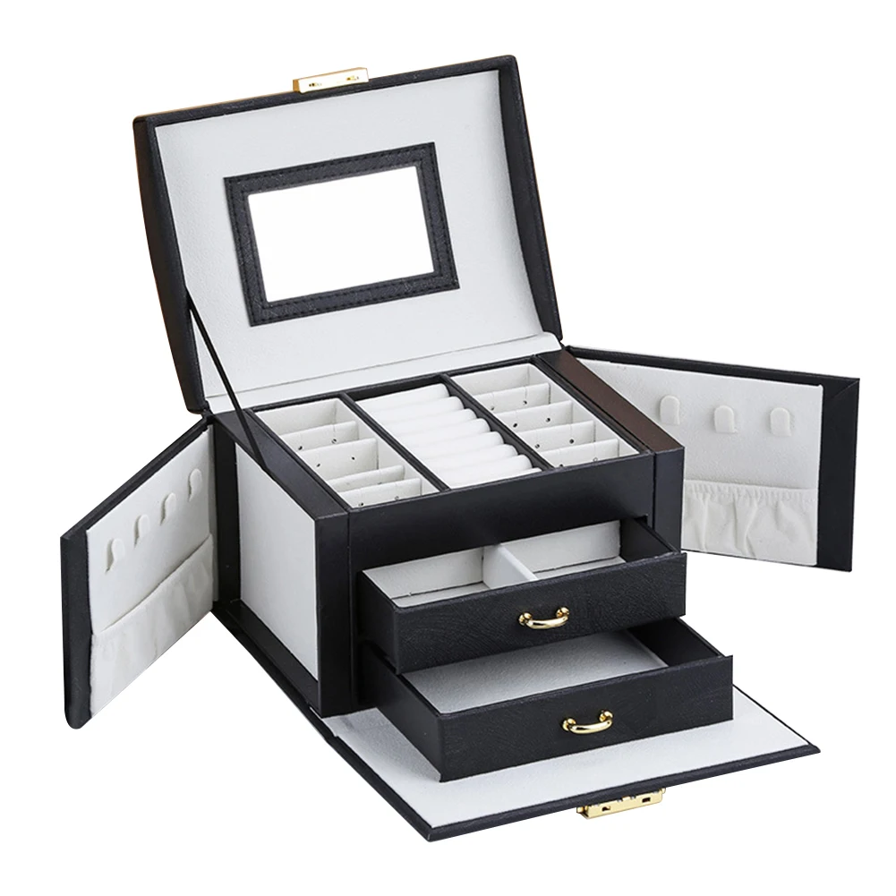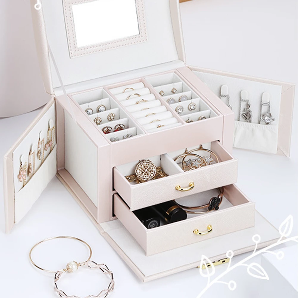 Простой Трехъярусный ящик для ювелирных изделий, коробка для хранения, держатель, портативная шелковая нить, украшения, серьги, кольцо, упаковочный чехол с зеркальным органайзером