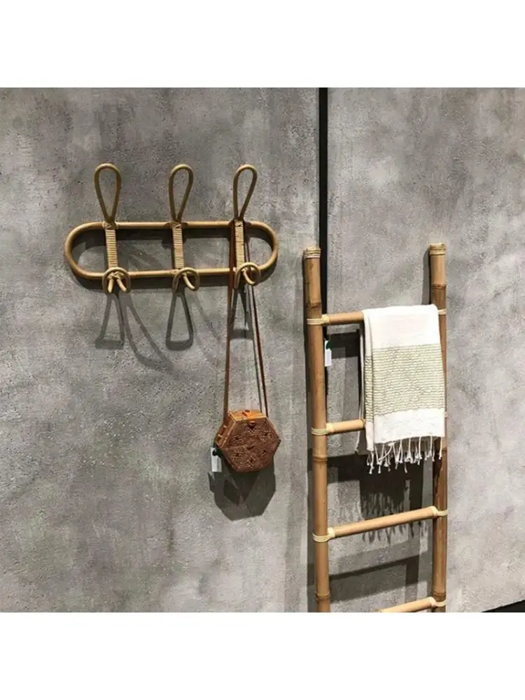 Декоративные настенные крючки из ротанга в рустикальном стиле, 3 крючка5 крючков, подвесная вешалка для пальто, настенная вешалка из ротанга, держатель для одежды