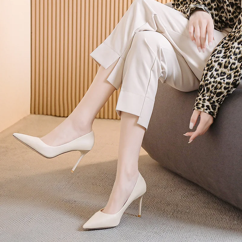 Туфли-лодочки женские с острым носком, роскошные вечерние элегантные офисные однотонные из овечьей кожи на тонком каблуке 9 см, K0031, весна