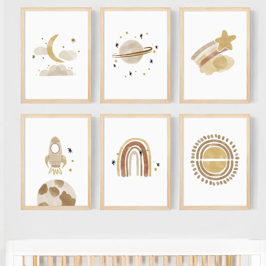 Радуга Солнце Луна Звезда планета ракета мультфильм холст для детск...
